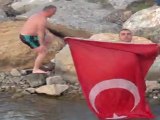 4 KM BOYUNCA YAĞAN YAĞMURA RAĞMEN TÜRK BAYRAĞINI BIRAKMADI.