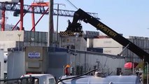 The rescue driver jumped out of his cab seconds before it tumbled over the side, through a metal barrier.