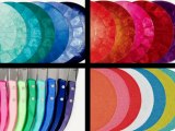 It comes in white now and an antique color is kind of a creamy white, an aqua, a sage, a mocha, and a metallic grime. And they also offer a scalloped edge as well as a lacy edge, so it's nice to mix the lacy and the scalloped and they also do that in all the colors as well. So again it's just very multifunctional. You can get really different looks from each place setting to the next or you can be very universal with it as well.