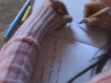 Caline écrit des 2 mains en même temps !