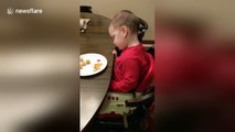 Baby tries to fight sleep at the dinner table