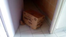 Farmer le chat qui aime se cacher dans les cartons