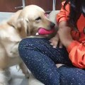 Actress Kushboo playing with dog