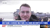 La Marine Nationale procede à des exercices de tir aeriens avec des avions de l'Aeronavale sur un terrain militaire situé à Plouharnel dans le Morbihan en Bretagne sud.