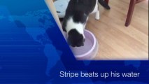 Kitty beats up waterdish