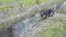 Siegfried et Horus dans l'étang avec un baton