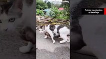 Gata adota macaquinho e o carrega como se fosse um canguru