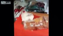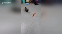Cat chased by remote-controlled centipede